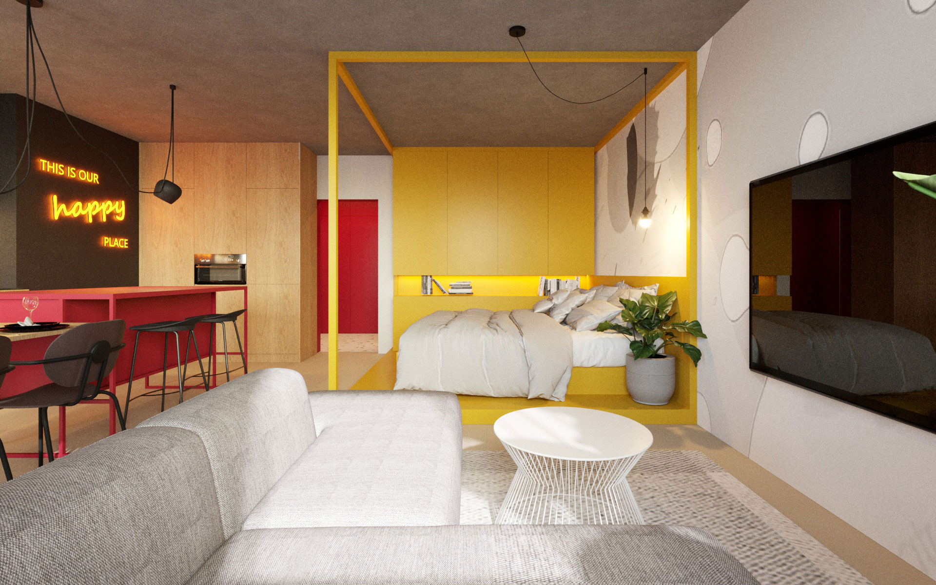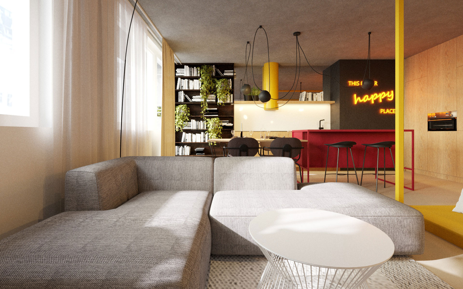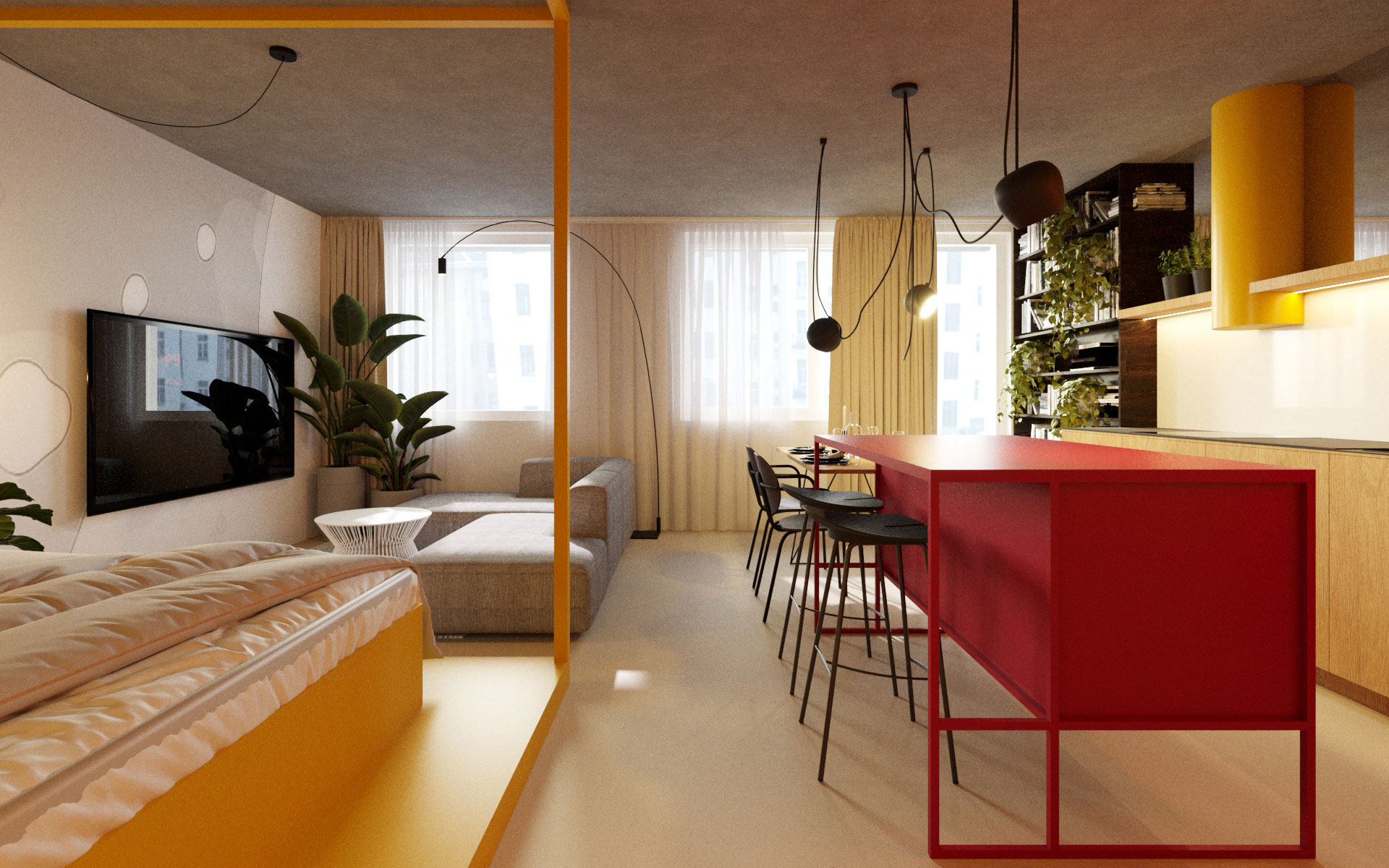 Interiér mikro bytu pro dva v Praze o ploše jen 26 metrů čtverečních