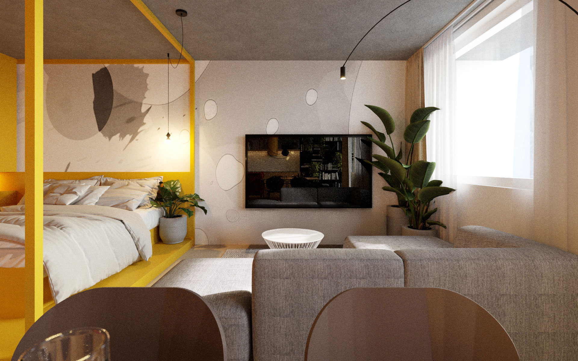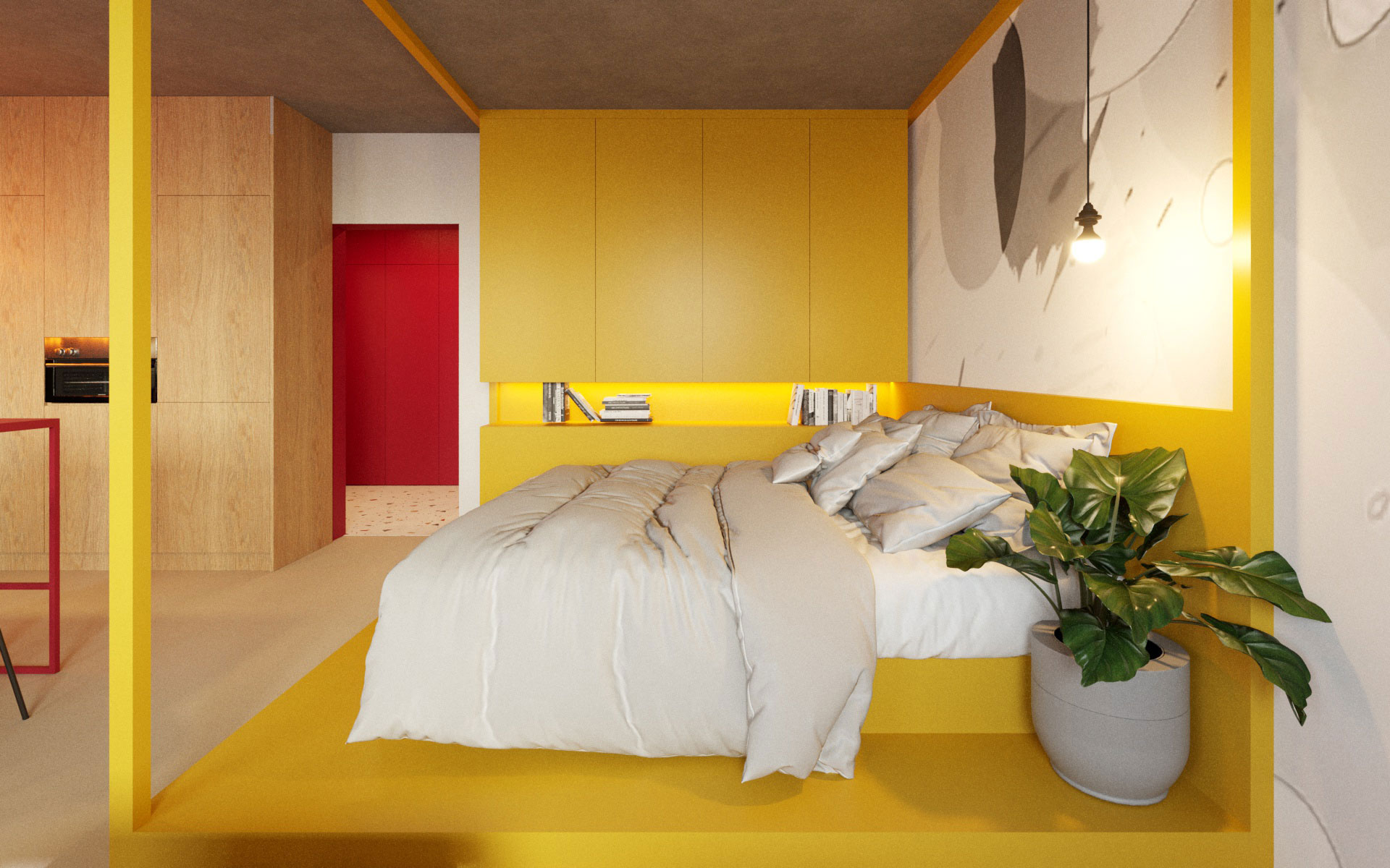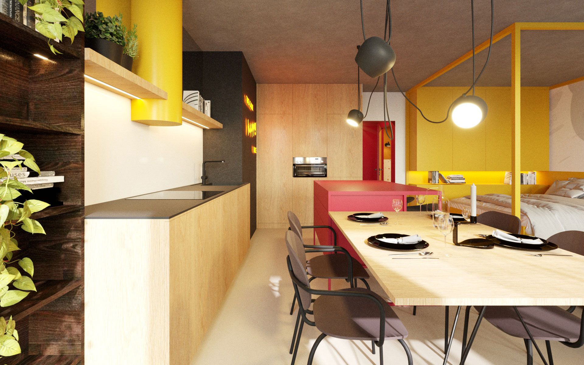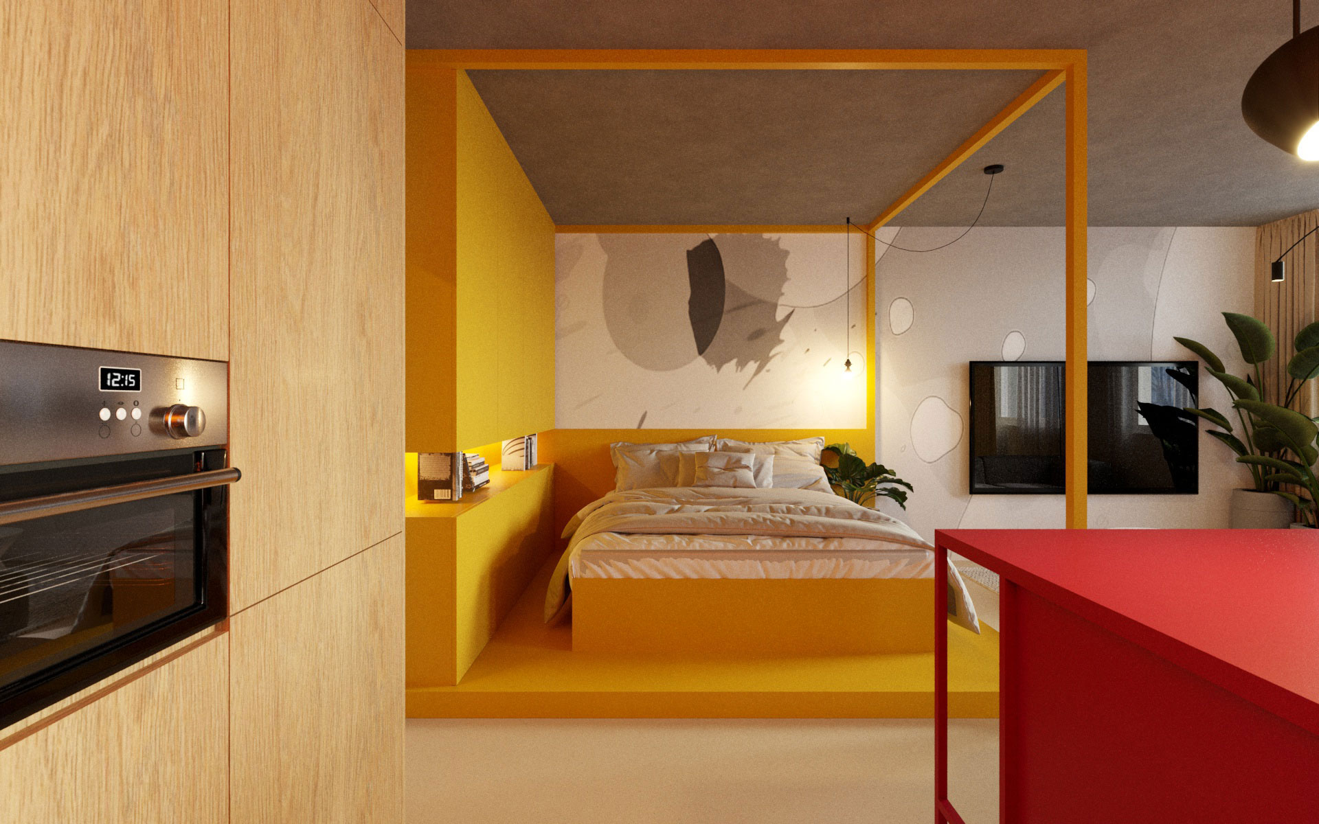 Interiér mikro bytu pro dva v Praze o ploše jen 26 metrů čtverečních