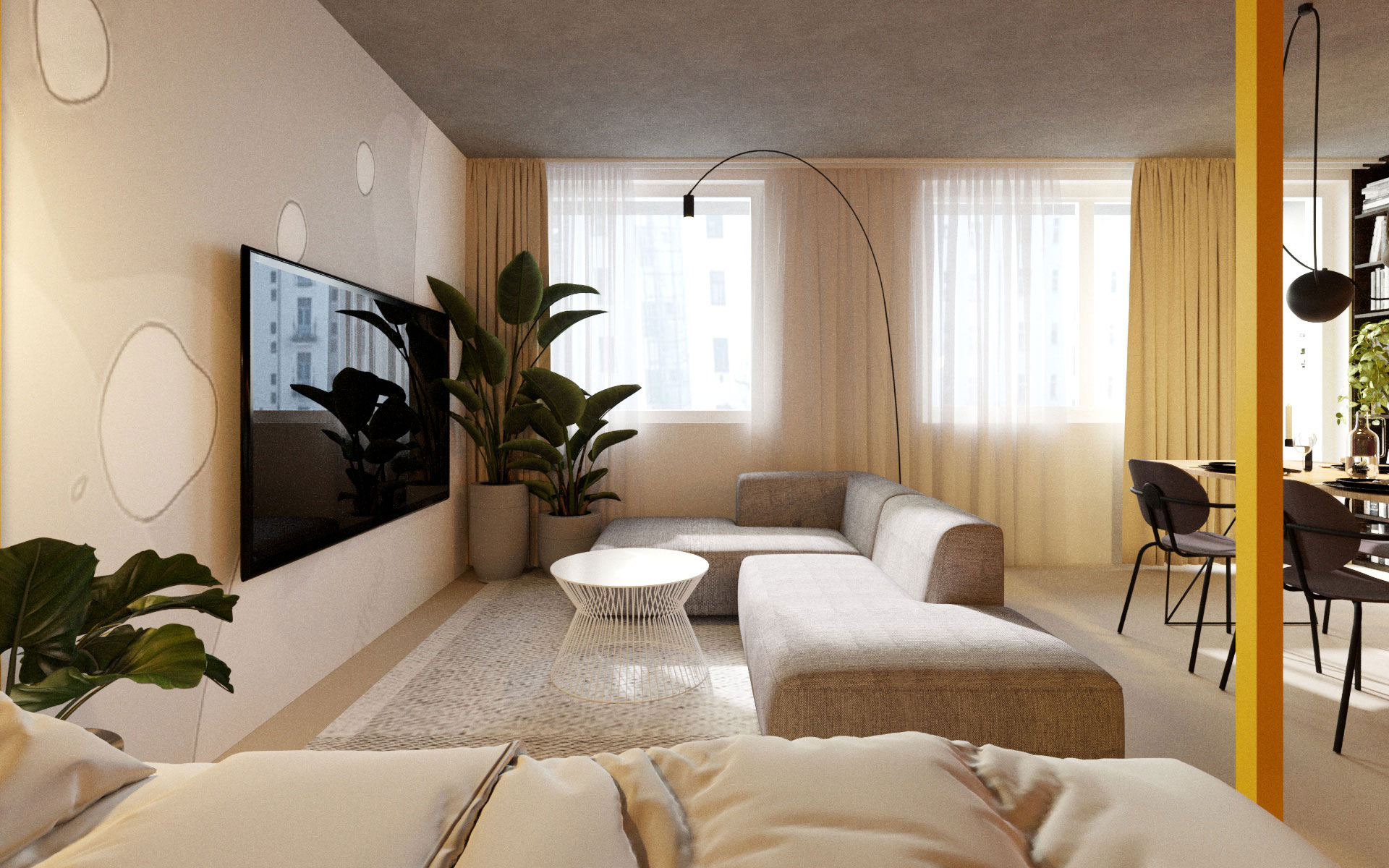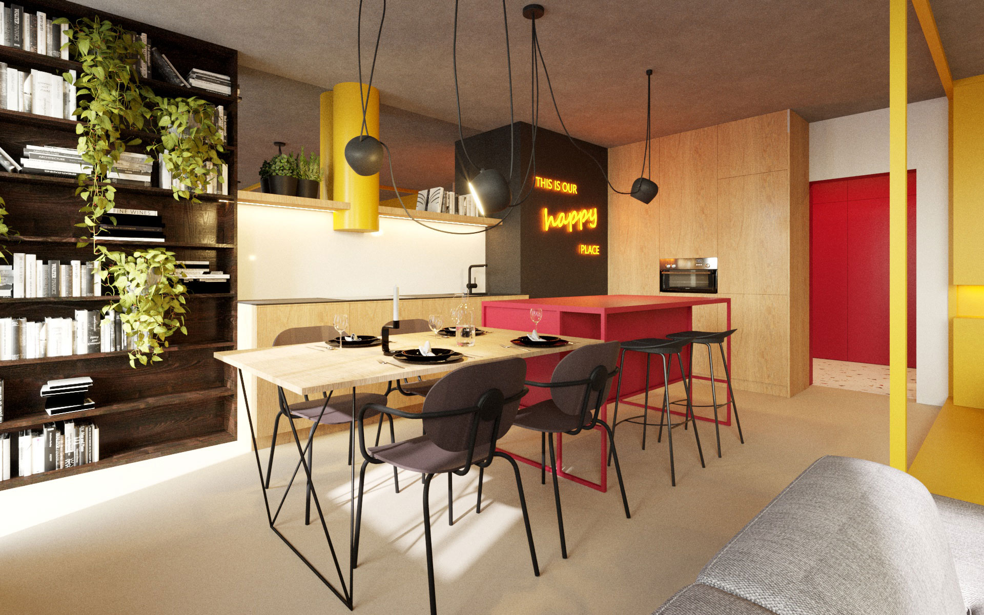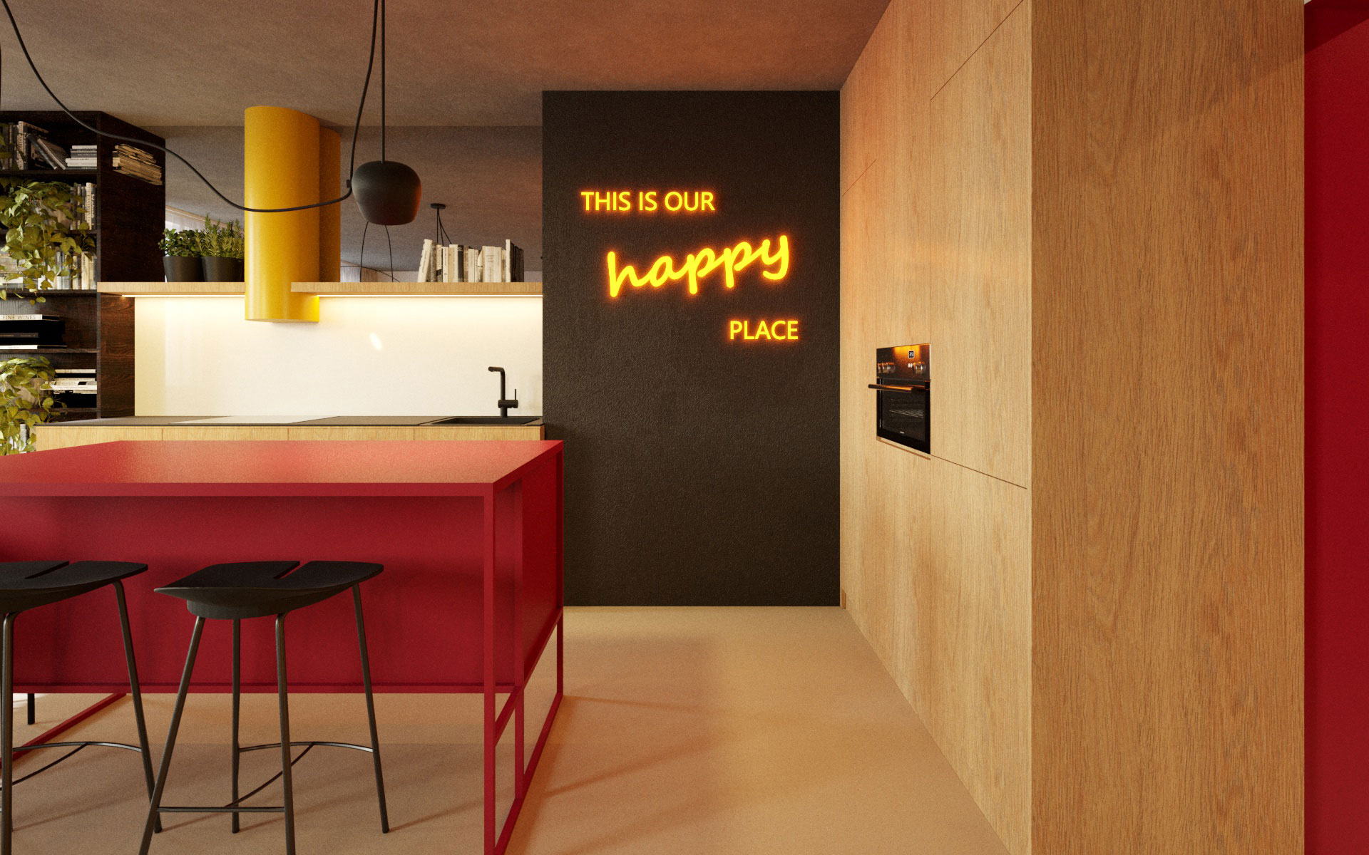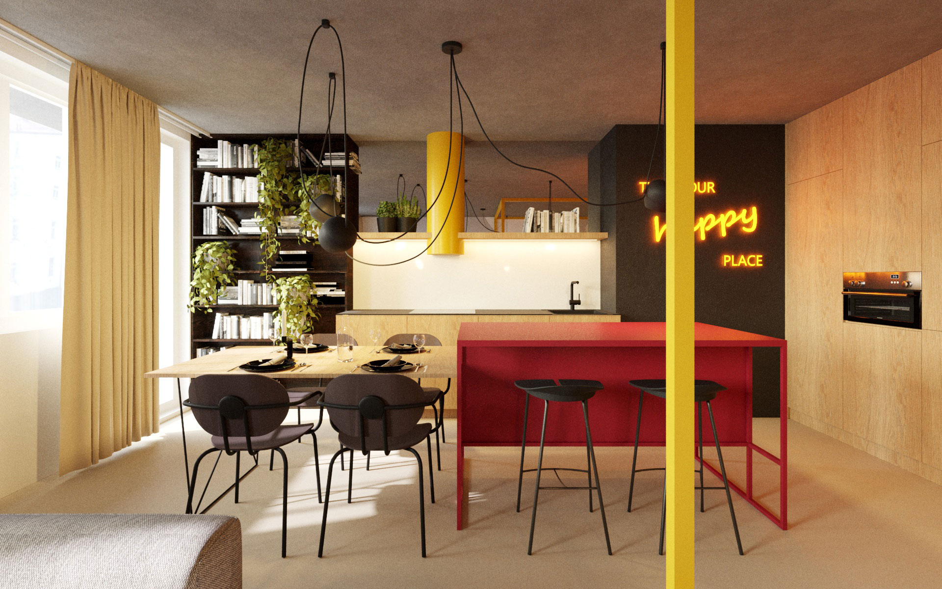 Kompletní proměna bytu ze 70. let. Změna dispozice, návrh vestavěného nábytku včetně kuchyně a spotřebičů, výběr kusového nábytku a svítidel, dohled nad realizací až do fáze k nastěhování.