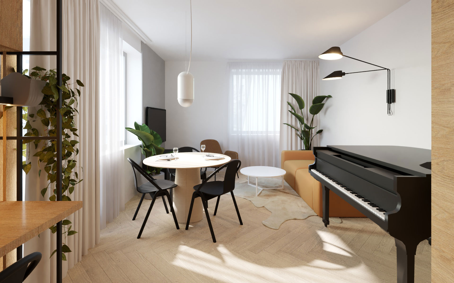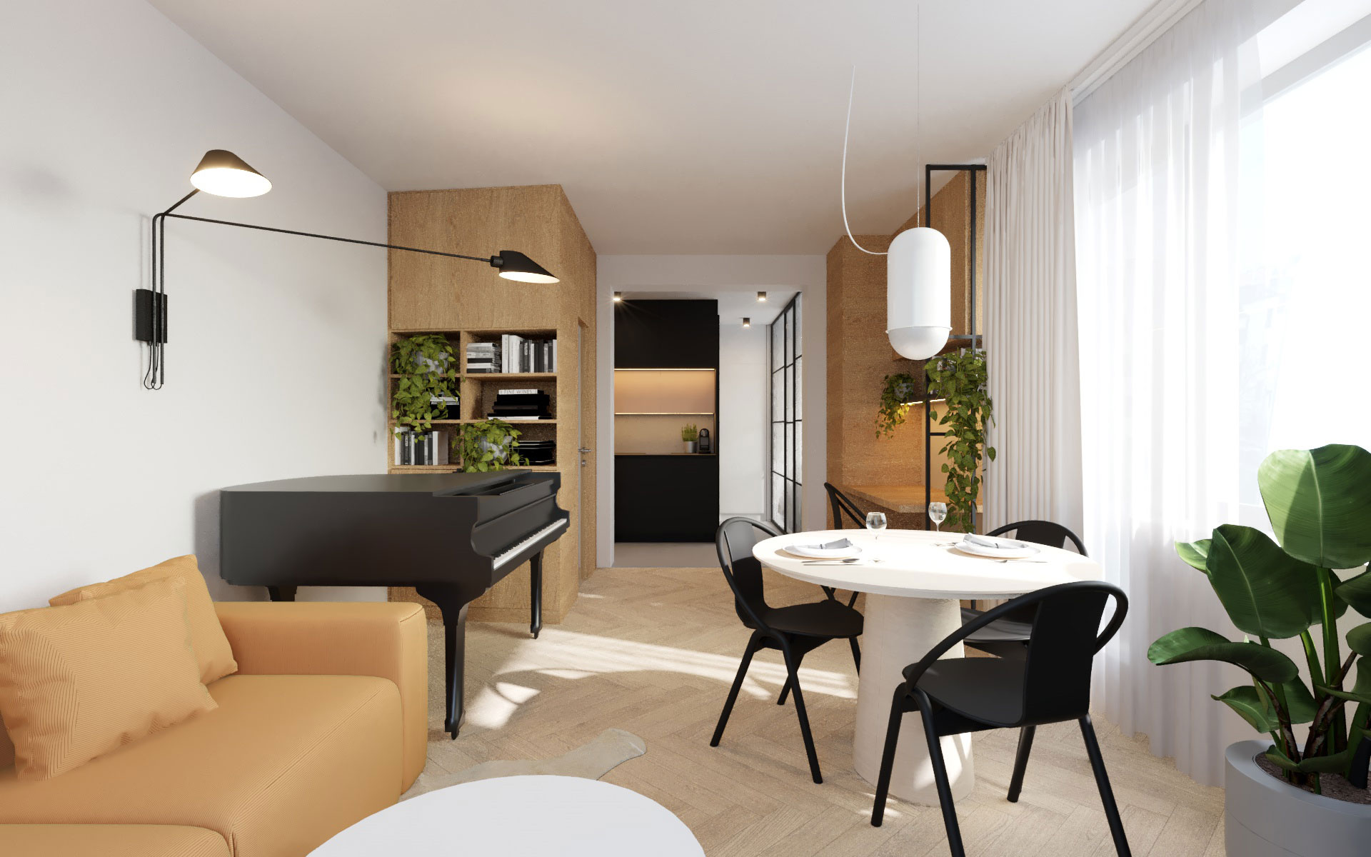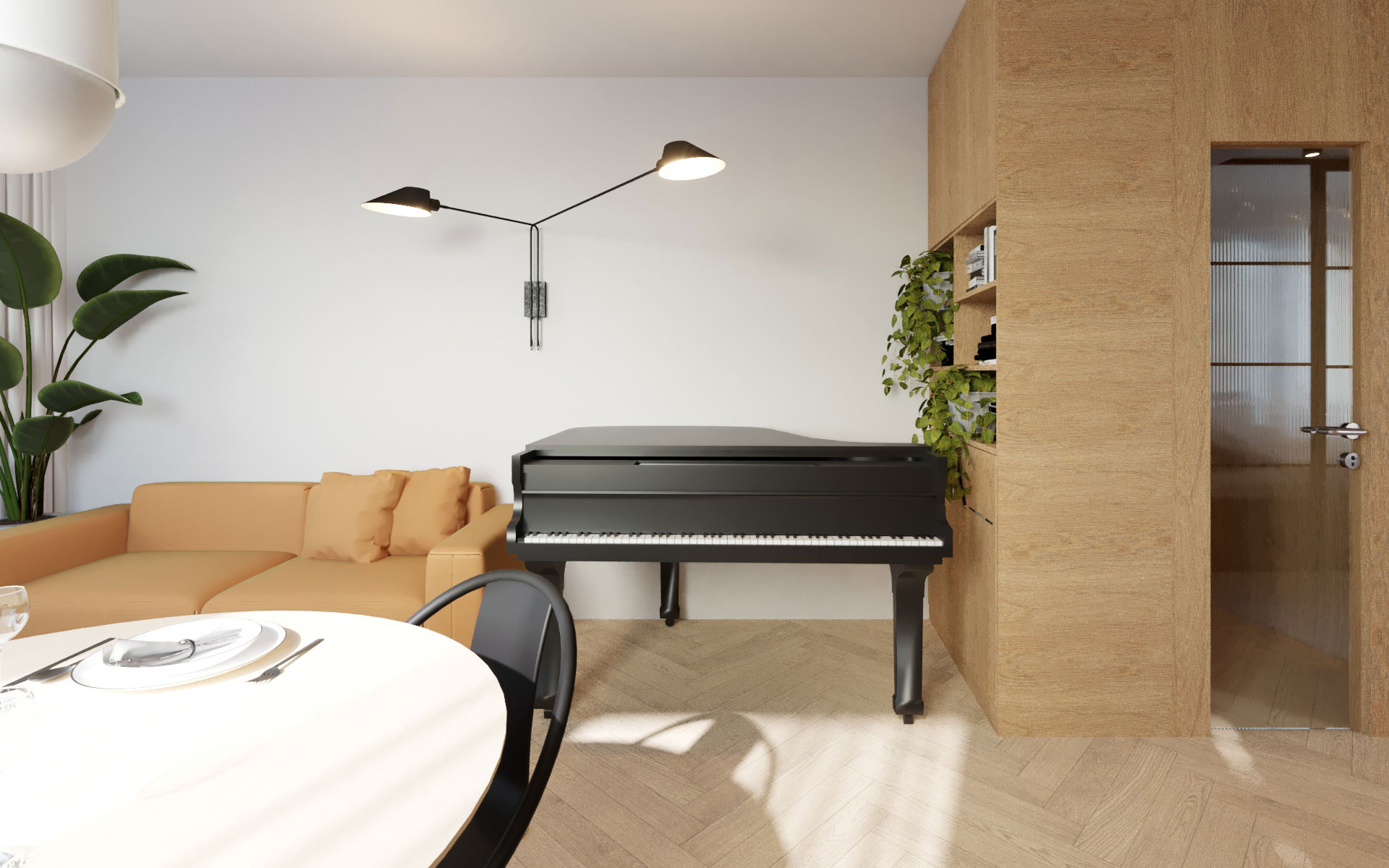 Rekonstrukce interiéru bytu v Praze se saunou a klavírem