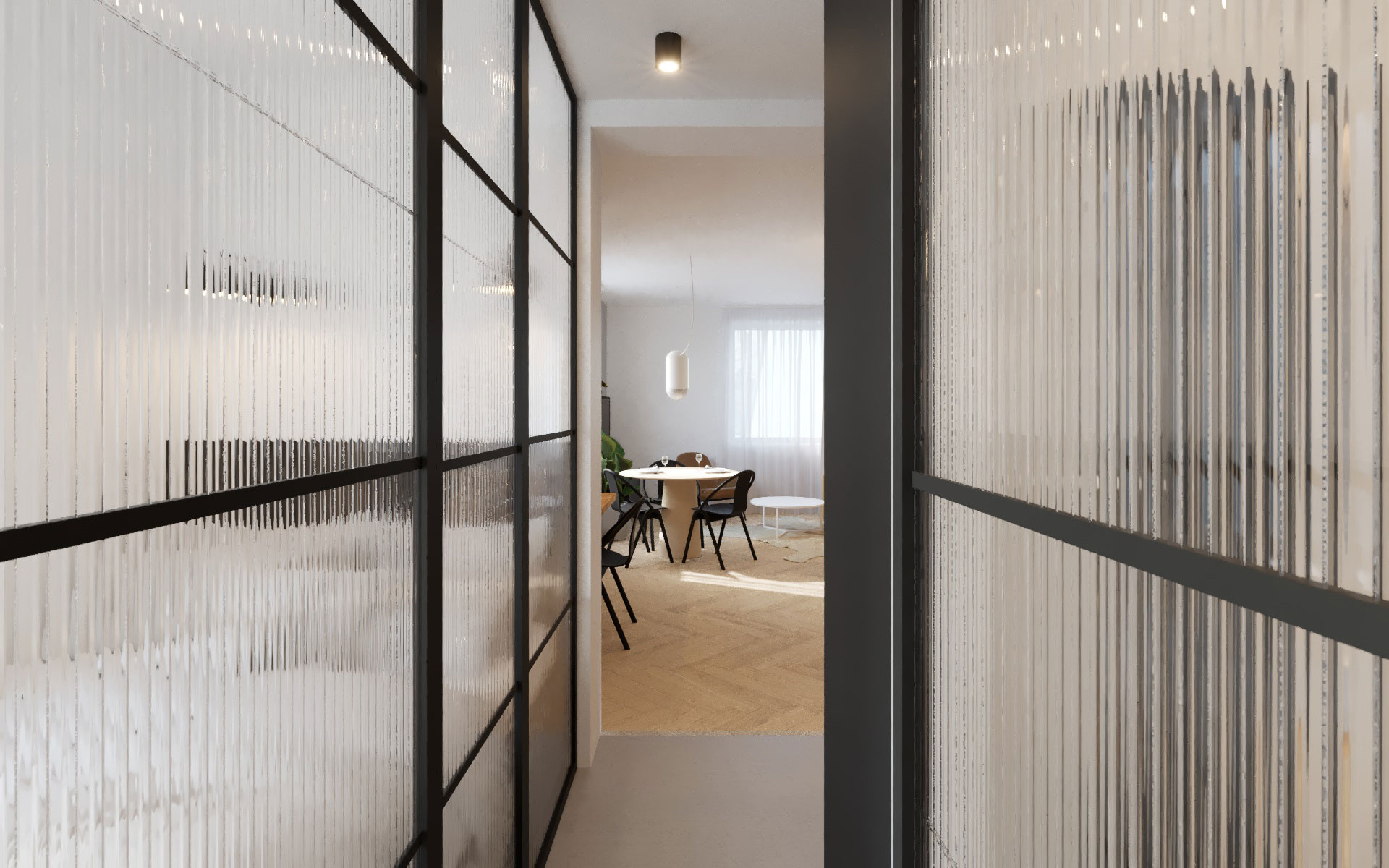 Návrh interiéru bytu v Praze v industriálním duchu