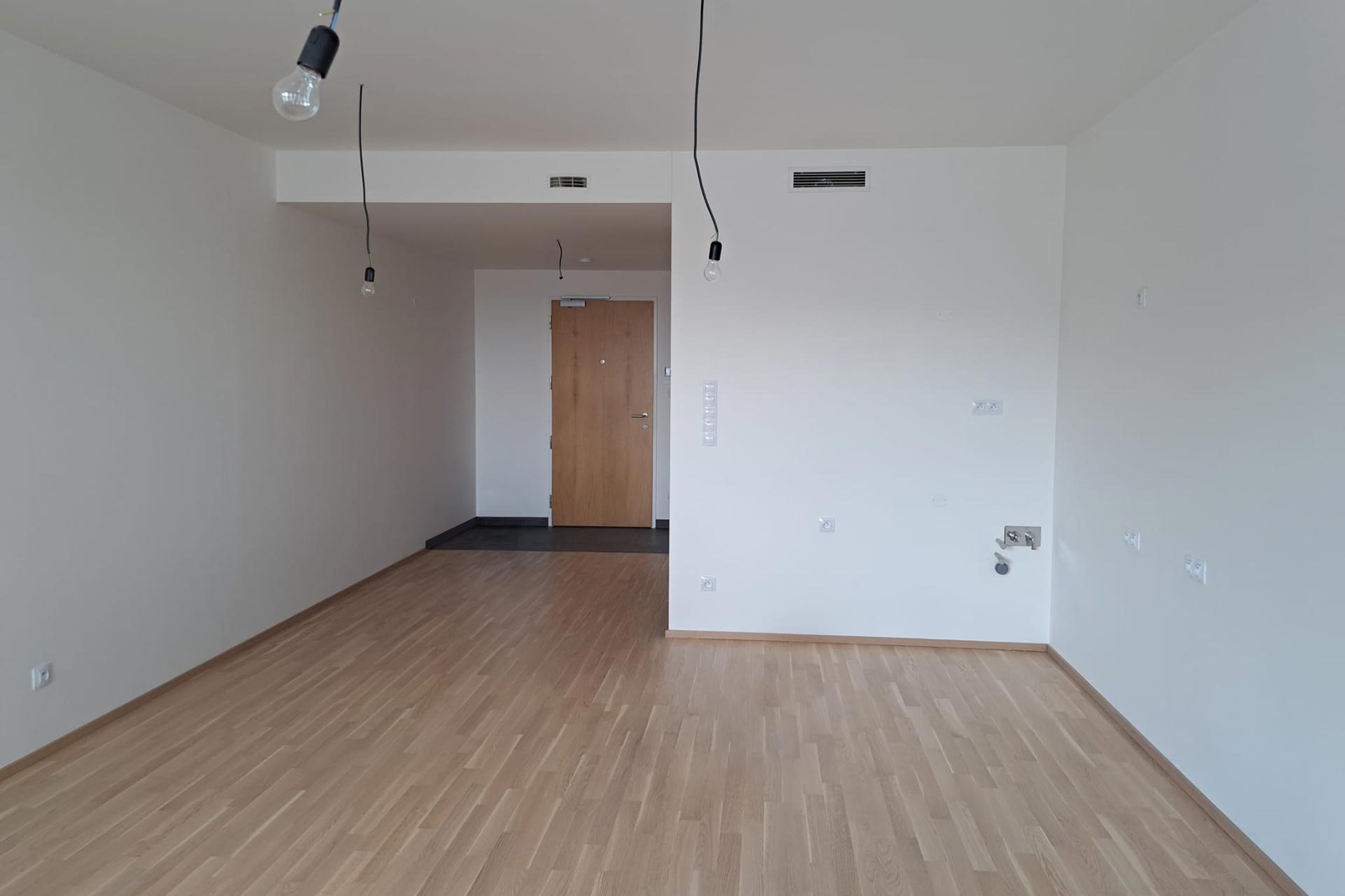 Navrhovat malometrážní byt znamená hledat rovnováhu mezi maximální funkčností a pocitem prostorové svobody. V kontextu současného trhu s bydlením je garsoniéra v novostavbě nejčastější volbou i největší architektonickou výzvou. Cílem tohoto návrhu nebylo bojovat s danou dispozicí, ale vtisknout unifikovanému prostoru jasný charakter a dokázat, že kvalita bydlení není přímo úměrná počtu metrů čtverečních. Namísto zaplňování plochy solitérním nábytkem jsem vsadil na koncept vloženého funkčního objemu, který z jedné místnosti vytváří plnohodnotný, strukturovaný domov.